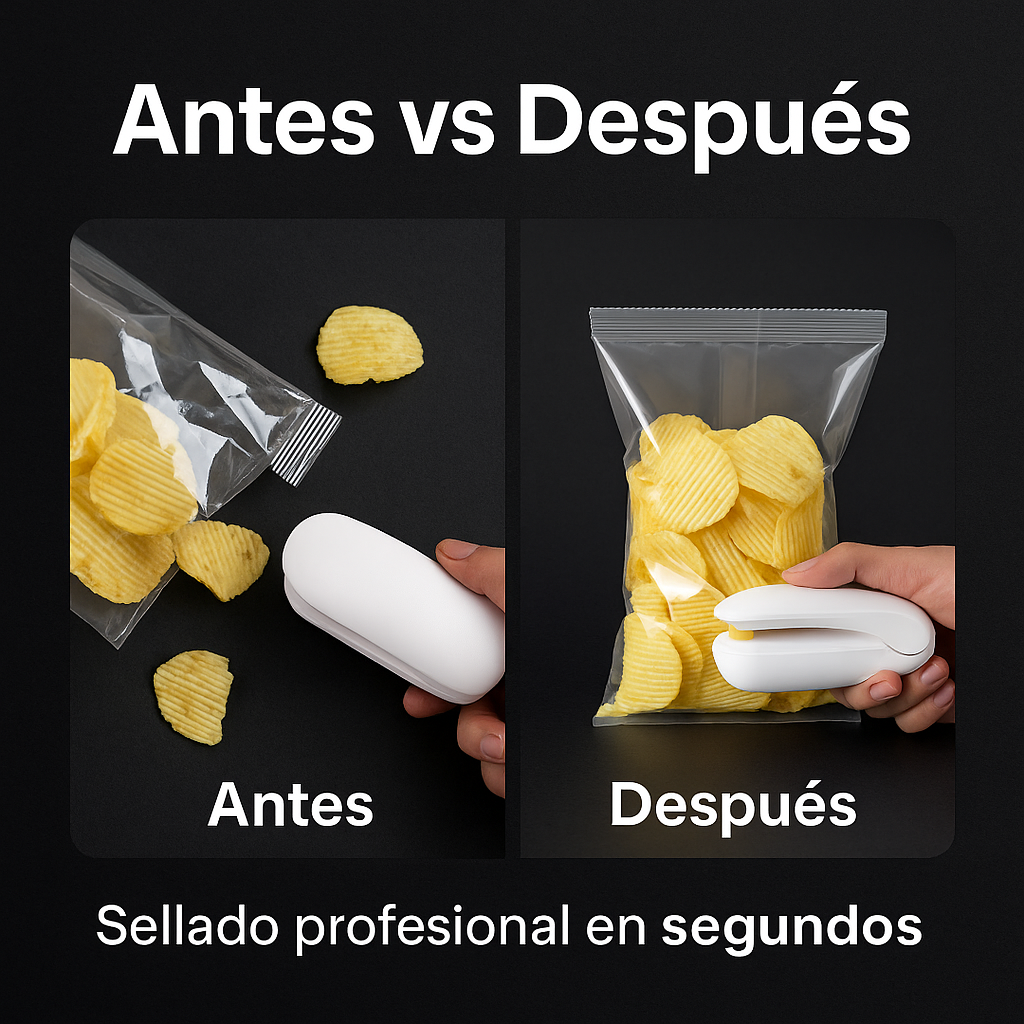 Funciona con la mayoría de bolsas plásticas: snacks, galletas, frutos secos, aluminio fino y más. No es ideal para bolsas muy gruesas o rígidas.