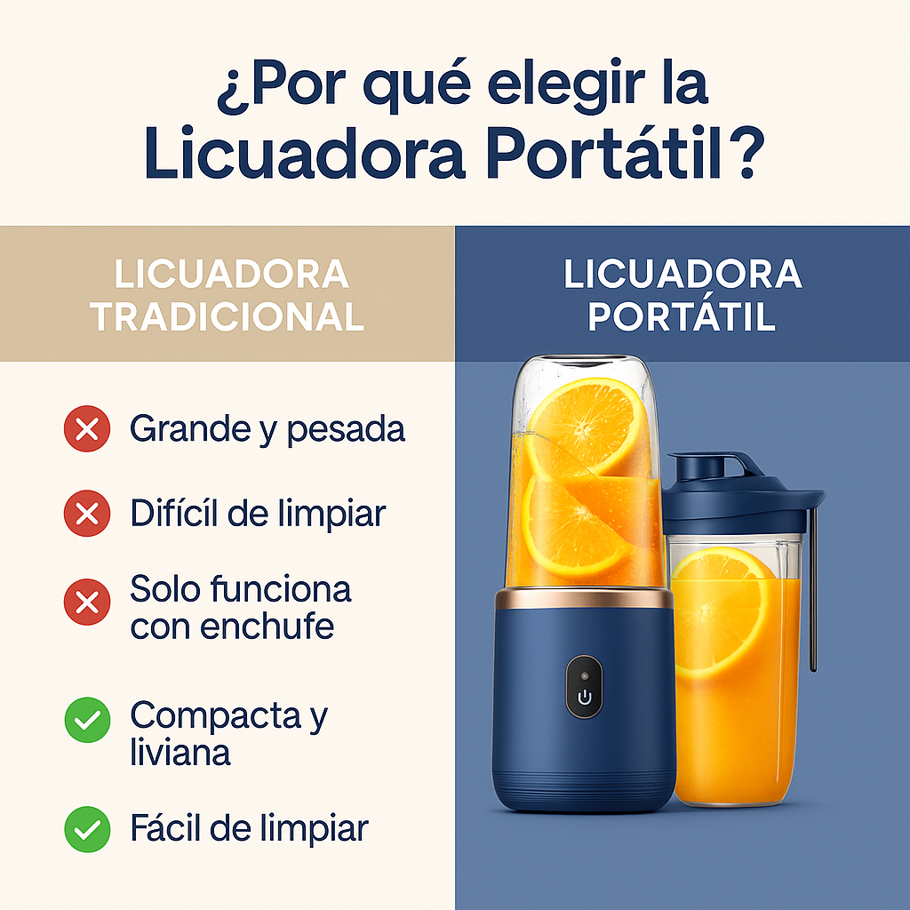 Tiene una capacidad de 400 ml — el tamaño perfecto para un batido individual o jugo rápido.